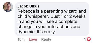 "I have been working with Rebecca for LESS than 1 month and so much has changed, for the better!! I have a very spirited 3.5 year old boy, who is an absolute joy but can definitely be challenging. We were both yelling and in tears more days than not (that is hard to admit). After just 3 sessions with Rebecca I swear I have a new child!! We have had an absolutely amazing week, no yelling!"